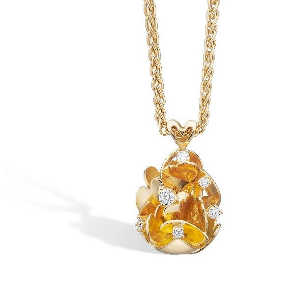 Af 18 karat guld med seks brillanter (i alt 0.35 carat) – kæde af 14 karat guld
