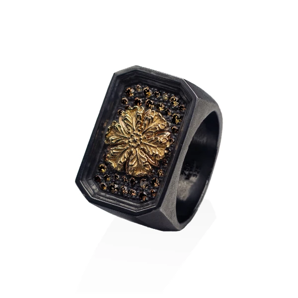 Ringens blomst refererer til suitens stuk, med ringskinnen som et opløftende, snørklet-detaljeret element; brillanterne viser, hvor smukt hotellet funkler i dag i København. Derved hylder Fleur d’Angleterre hotellets århundrede-lange historie, overdådighed og skønhed ved dens ædle materialer