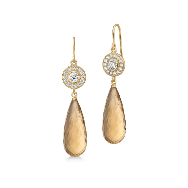 Af 18 karat guld, 14 brillanter (i alt 0.31 carat) og 12 champagnefarvede brillanter (i alt 0.26 carat)