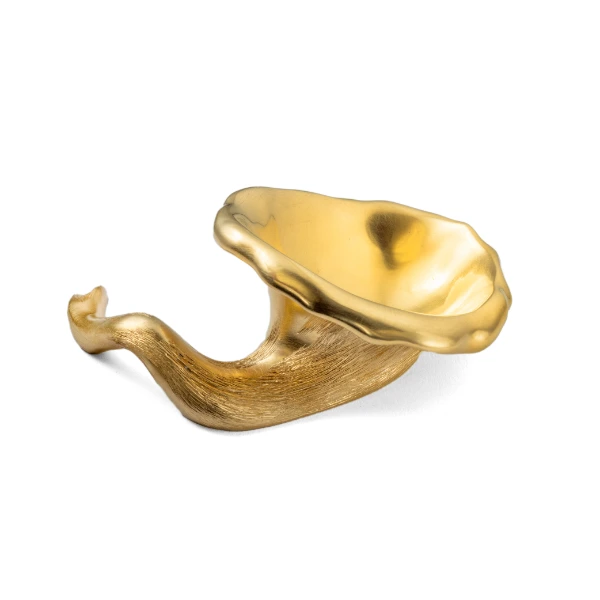 Kantarellen – her i størrelse large – er en af Gitte Bjørns yndlingsdelikatesser. Dens form lægger op til brug i hjemmet som smykkeskål eller til bittesmå luksus-serveringer, og derfor hører den også helt naturligt hjemme i d’Angleterres eksklusive restaurant