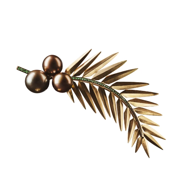 Brochens palmeblad refererer til de glamourøse fester, der har været afholdt i balsalen Palmehaven – her skal man forestille sig champagnecocktails og fantastiske middage, der er blevet indtaget af kvinder iklædt store rober og glitrende juveler