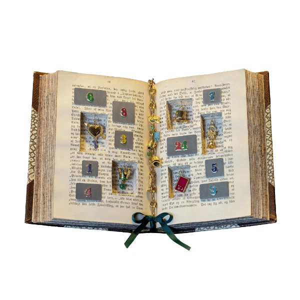 Inspireret af d’Angleterres julepyntede facade har guldsmed Mette Nordby Thomsen lavet en julekalender. Bag hver ”låge” ligger et vedhæng og et charmarmbånd ses i marginen af bogen. Iblandt de små motiver henviser den høje hat til forfatteren, og bogvedhænget symboliserer magi og eventyr