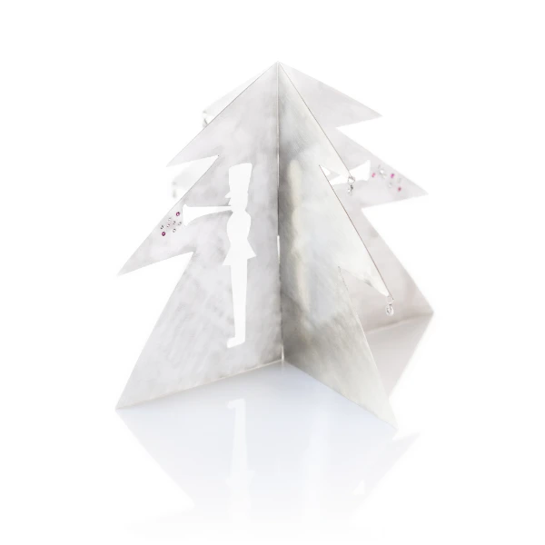 I Tine Lindhards barndomshjem var et metaljuletræ tegn på julens snarlige komme. Derfor har hun udsavet en silhuet af julens legesoldat med trompet i et grantræ udført i sølv. Hans eventyrlige melodi symboliseres af ædelsten, og træets ’pynt’ er små sølvdråber isat diamanter